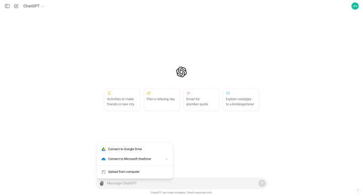 بعد تسجيل الدخول، ستكون جاهزًا لتحميل ملف PDF الخاص بك. في نافذة المحادثة، انقر على رمز المشبك الورقي الموجود بجانب حقل إدخال النص. سيتيح لك هذا الخيار اختيار مصدر الملف الذي تريد تحميله،