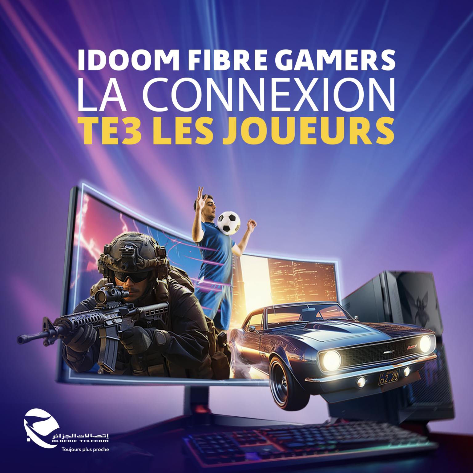 أعلنت إتصالات الجزائر عن إطلاق عرضها الجديد IDOOM FIBRE GAMERS، المصمم خصيصًا لعشاق ومحترفي ألعاب الفيديو. يوفر العرض سرعات إنترنت فائقة تصل إلى 1 جيجابت في الثانية، مع زمن استجابة (Ping) منخفض جدًا وسرعات تحميل تصل إلى 600 ميجابت في الثانية، وكل ذلك بأسعار اشتراك جديدة.